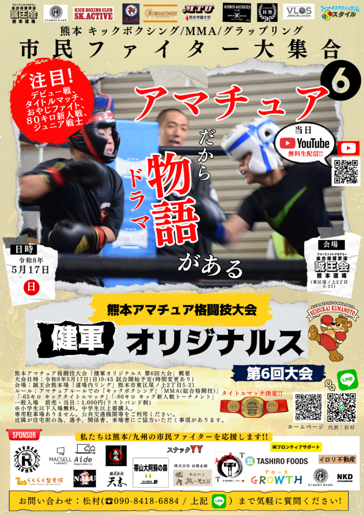 ※県内外のファイターの活躍の場を広げるべく、自主興行として熊本アマチュア格闘技大会「健軍オリジナルス」シリーズを定期開催(年2回)しております!!