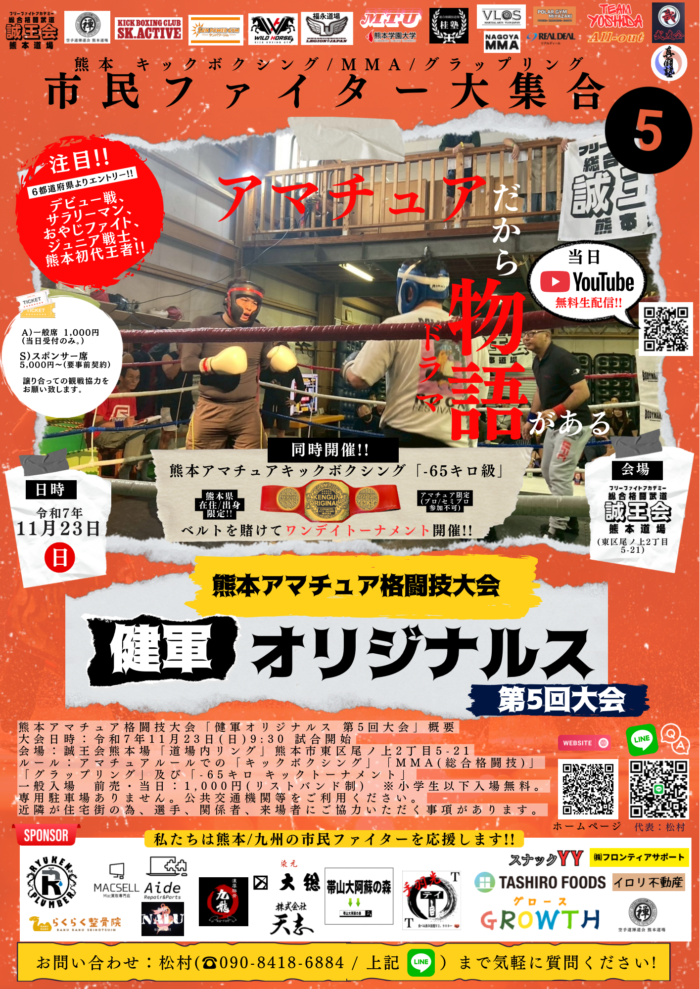 当日11/23(日)9:30~14:30 YouTube無料生配信あります!!→誠王会熊本道場(フリーファイトアカデミー総合格闘武道「誠王会熊本道場」) – YouTube