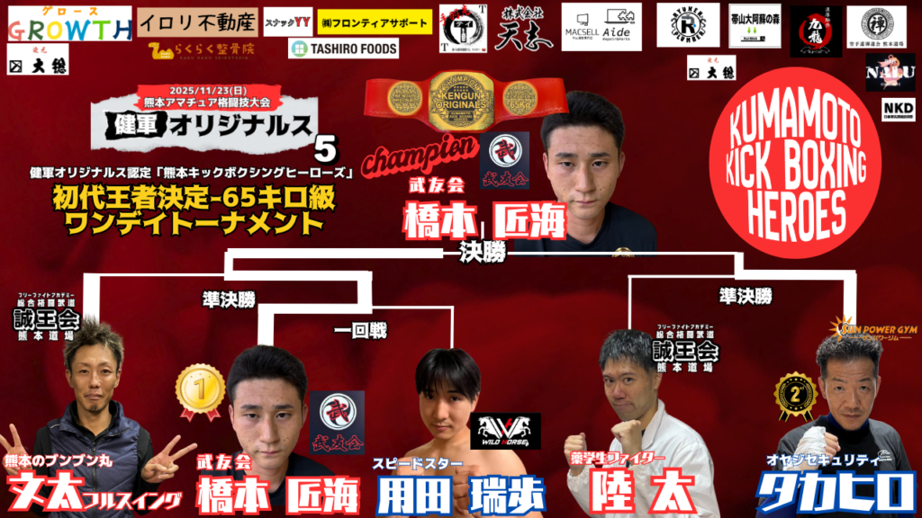 健軍オリジナルス認定「KUMAMOTO KICK BOXING HEROES」-65kg級 初代王者は、橋本 匠海 選手(武友会) となりました!おめでとうございます!