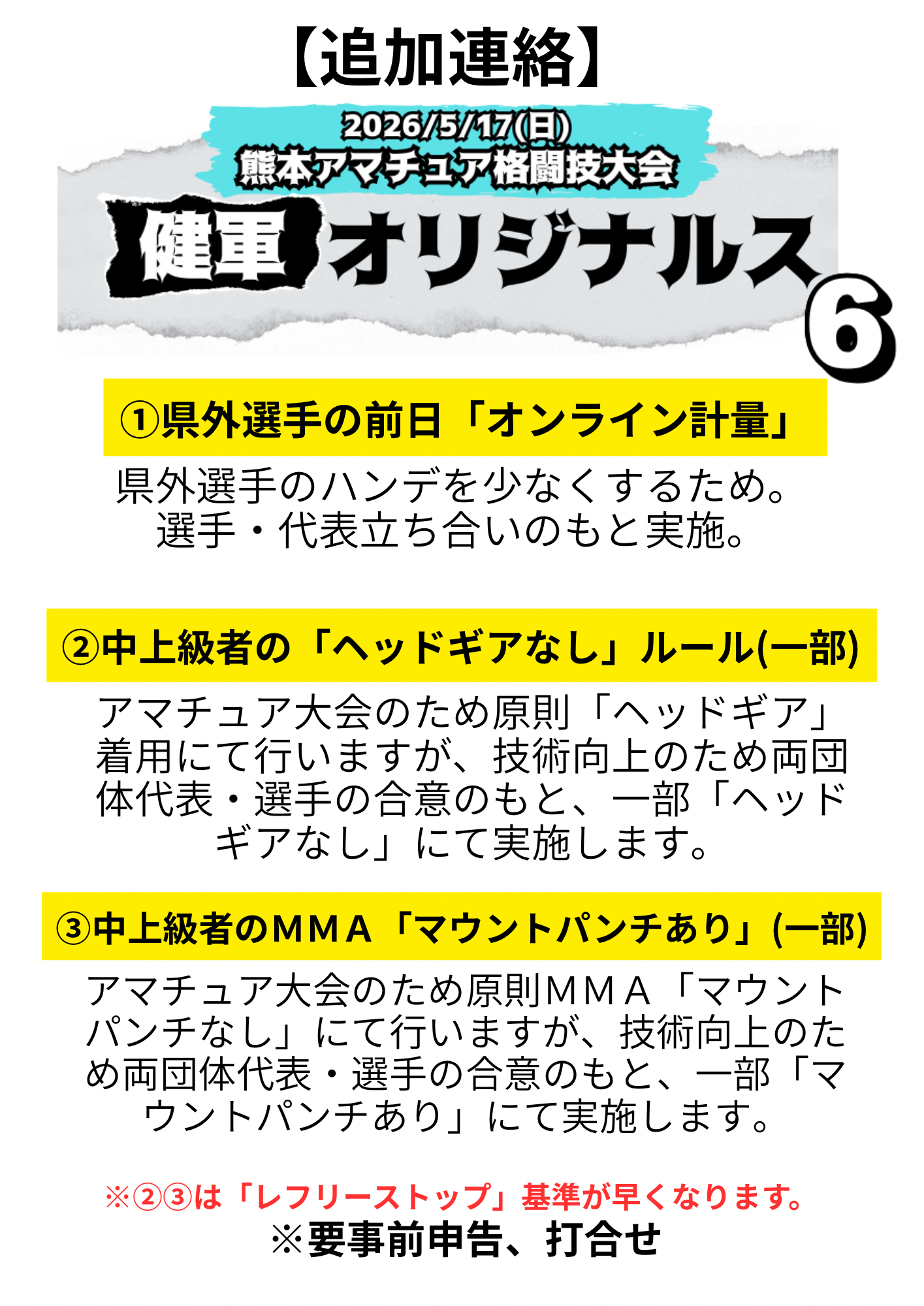5/17(日)、熊本アマチュア格闘技大会「健軍オリジナルス6」一部追加情報です🥊