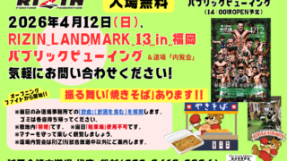 ブログ/お知らせ 【無料】4/12(日)RIZINLANDMARK福岡大会 パブリックビューイング&道場内覧会 (振る舞い「焼きそば」あります!!)
